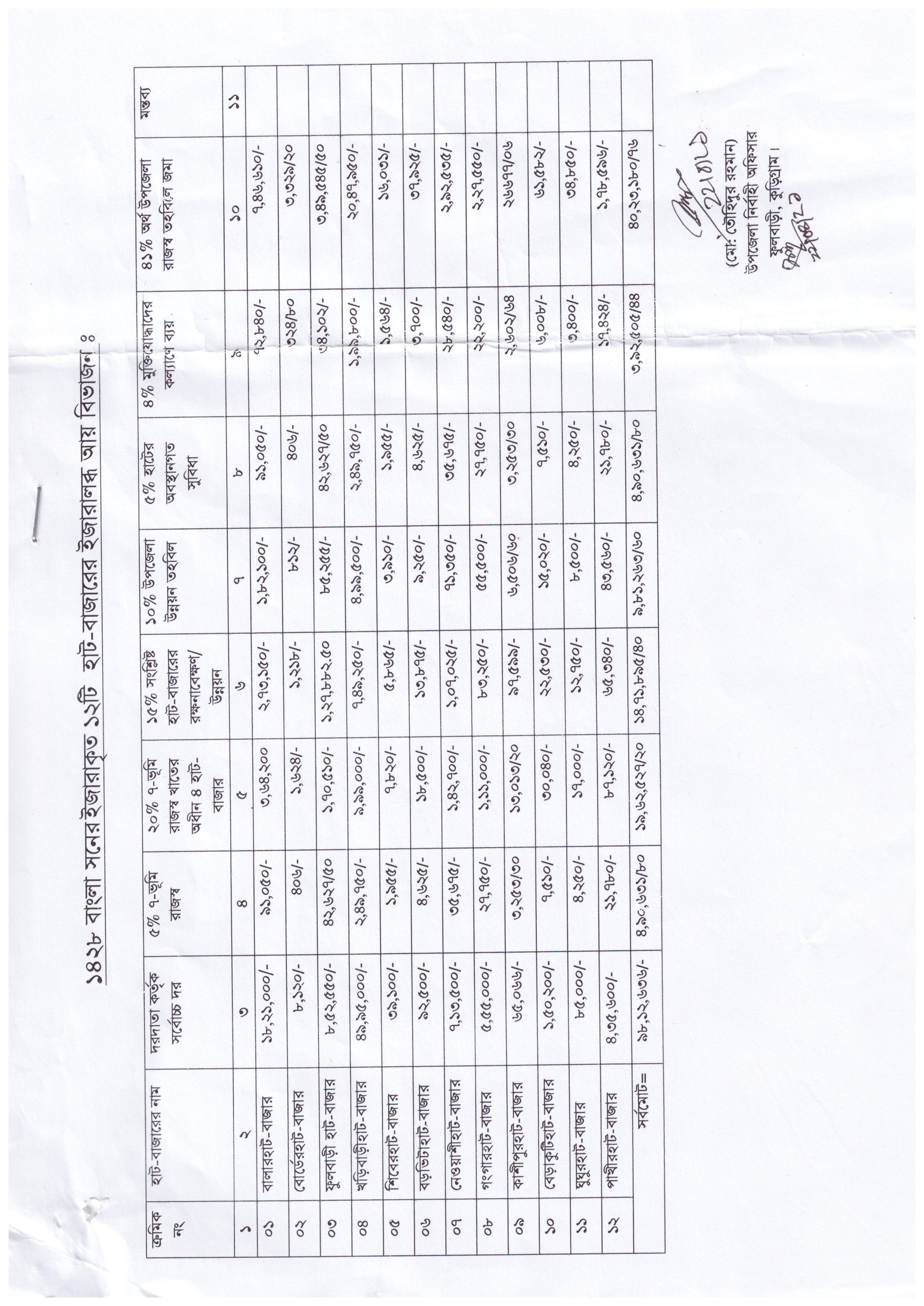 উপজেলা হাট-বাজার ইজারার সম্মিলিত তথ্য